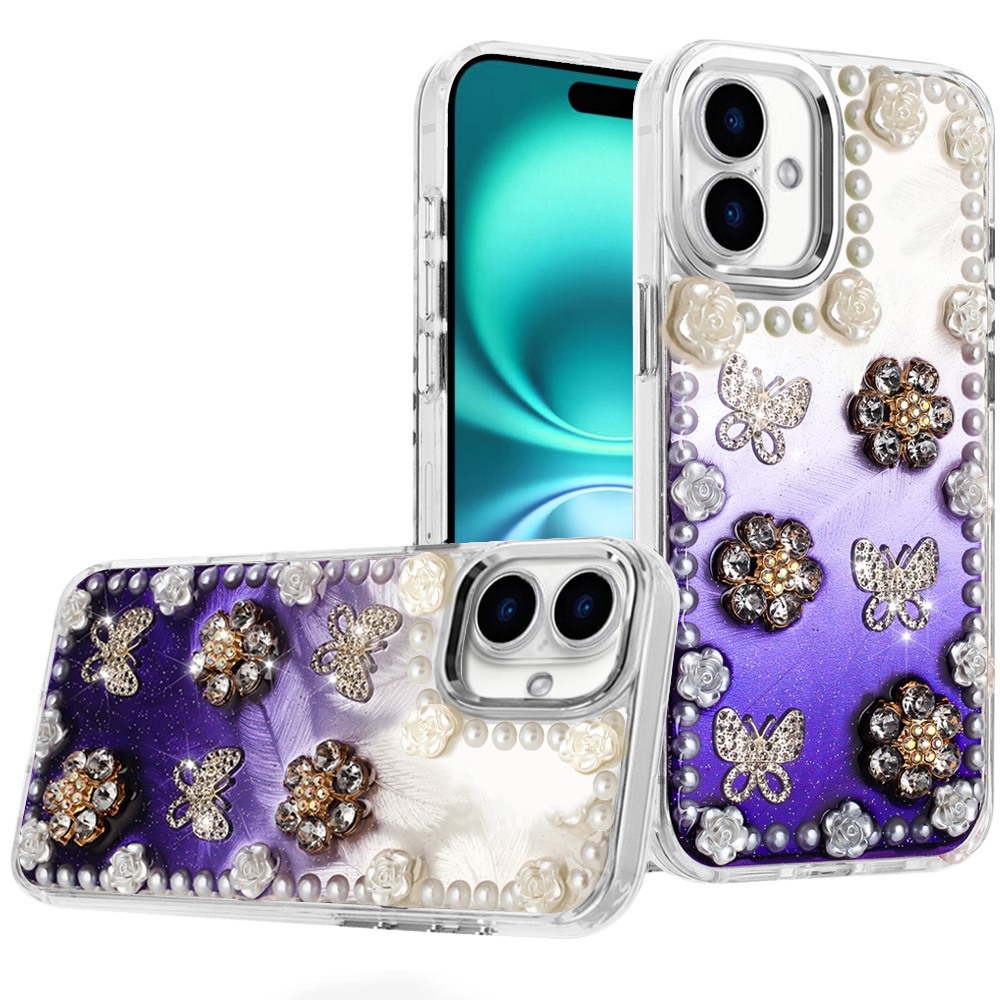 For iPhone 17 Pearls Epoxy Glitter Ornaments Design Chrome Edged Case - 3