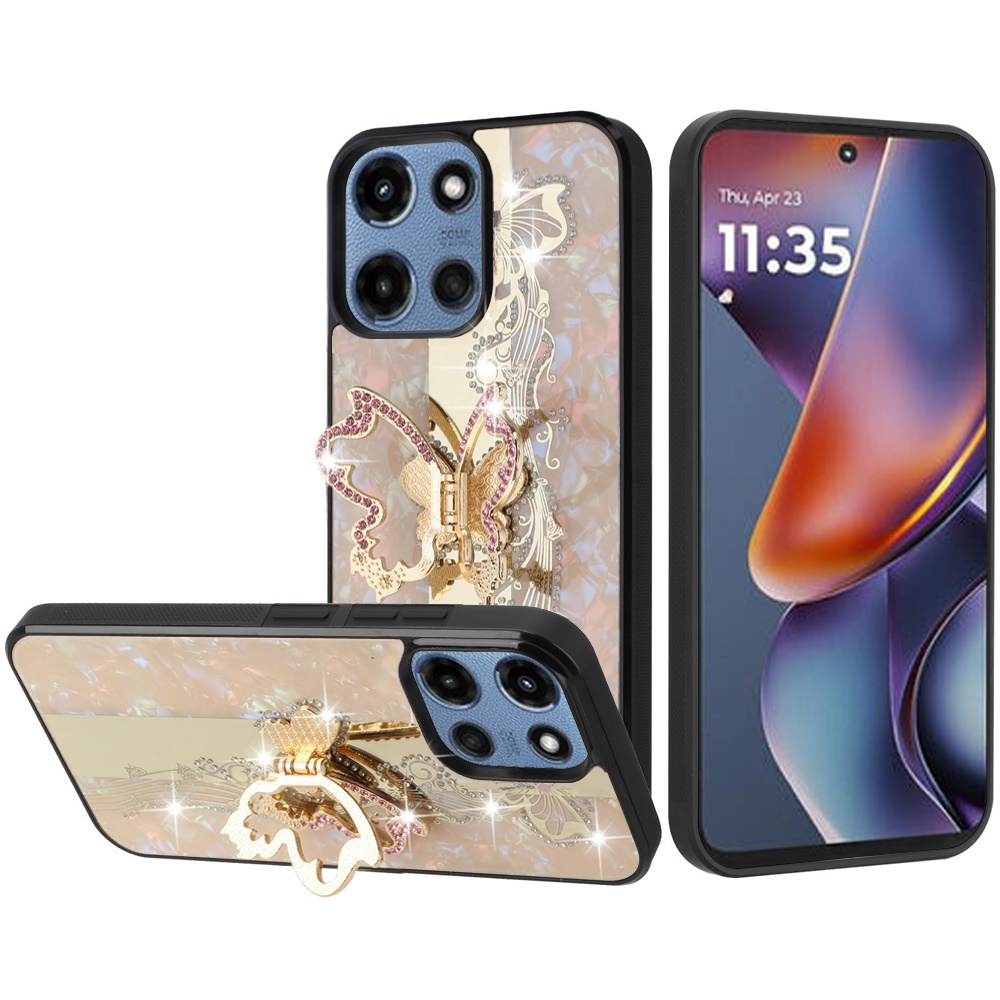 For Motorola Moto G 5G 2025 SPLENDID Diamond Glitter Ornaments Engraving Case Cover - Enchanted Butterfly Gold