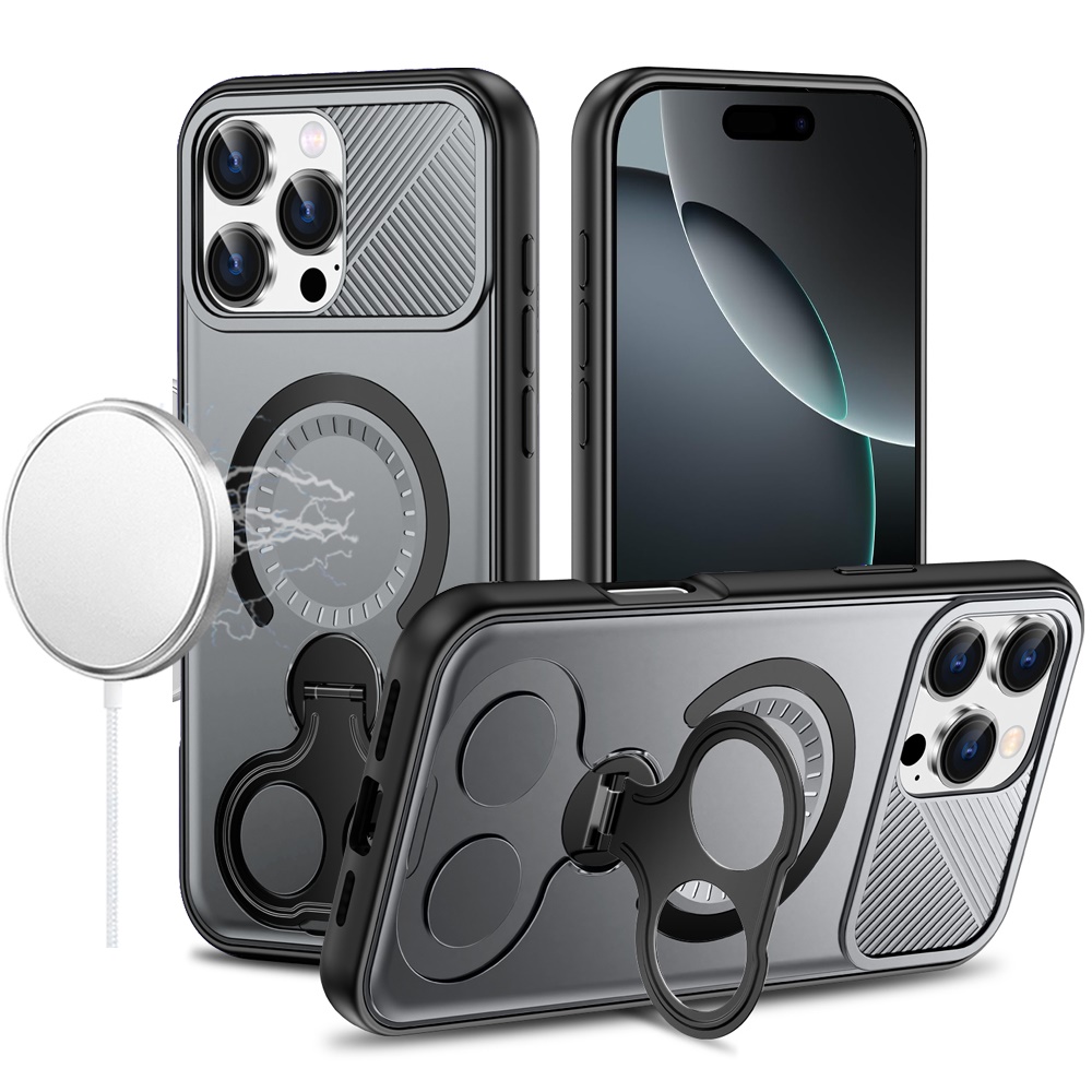 For iPhone 16 Pro Max 6.9 Car Mount with 2-Ring Stand Hybrid Case - Gray