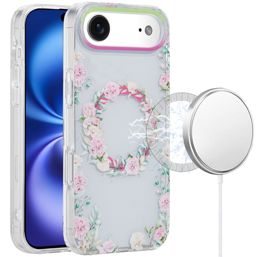 For iPhone 17 Air [Magnetic] Double Layer Design IMD Case - Green/Pink Flor