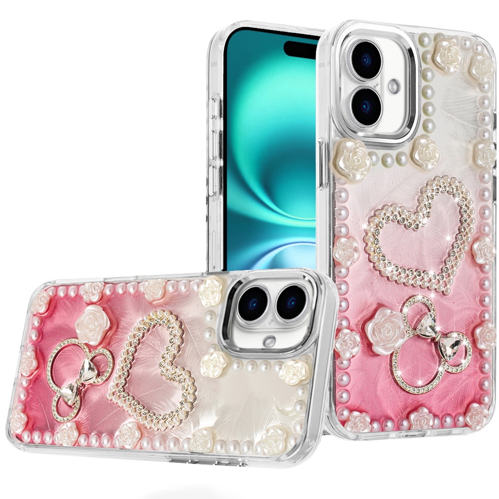 For iPhone 17 Pearls Epoxy Glitter Ornaments Design Chrome Edged Case - 10