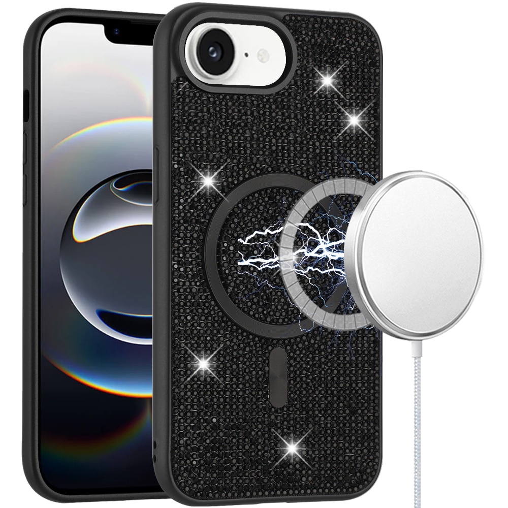 For iPhone 16E (E edition) / SE4 (2025) Diamond [Magnetic Circle] with CD Pattern Hybrid - Black