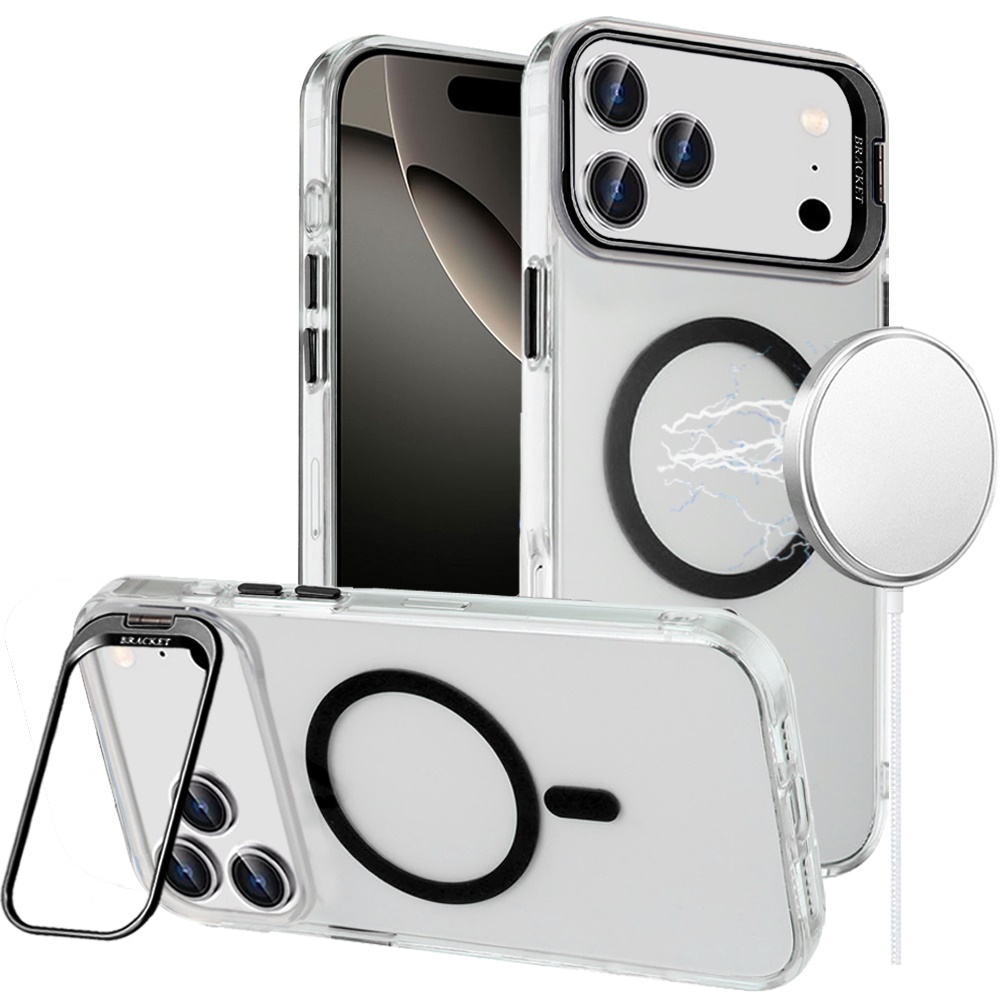 For iPhone 17 Pro Transparent HQ Hybrid with Metallic Camera Stand Magnetic Ring Case - Black