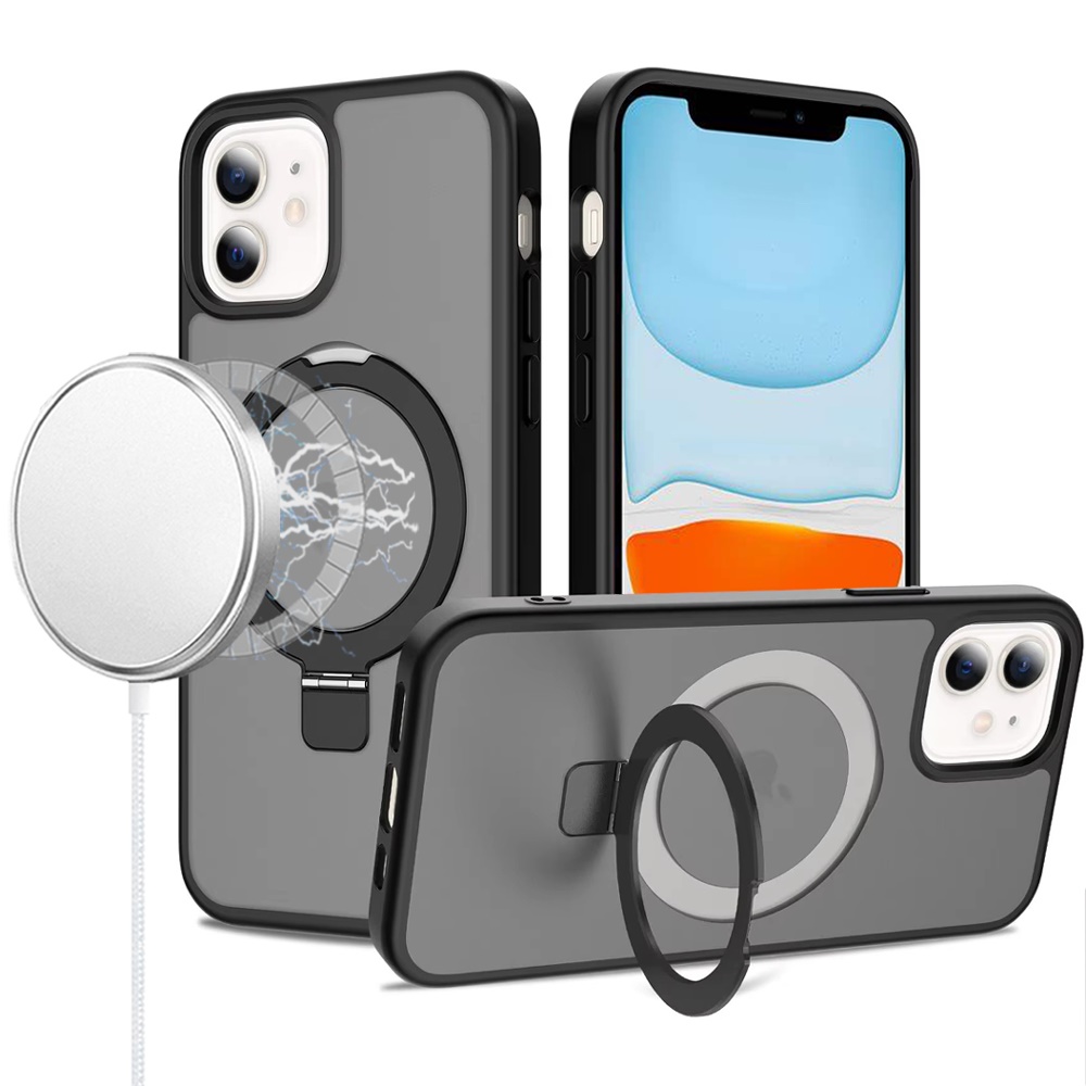 For iPhone 11 (XI6.1) Magnetic Matching Ring Stand Full Rotation Matte Hybrid - Black