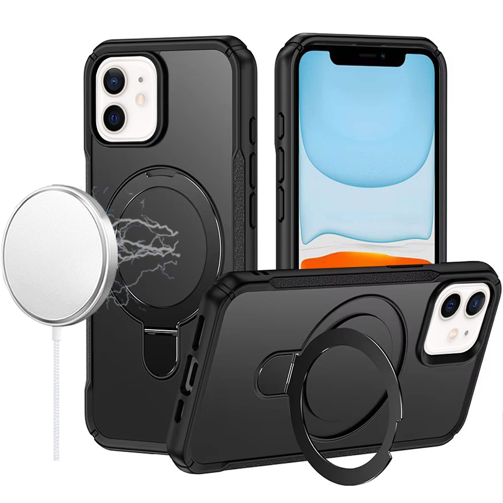 For iPhone 11 (XI6.1) Matte Finish Simplified Magnetic Ring With Stand Hybrid Case - Black