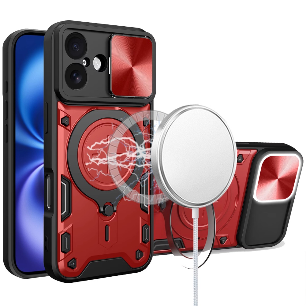 For iPhone 17 Magnetic Ring Stand Classic Design FULL Camera Protection Hybrid Case - Red