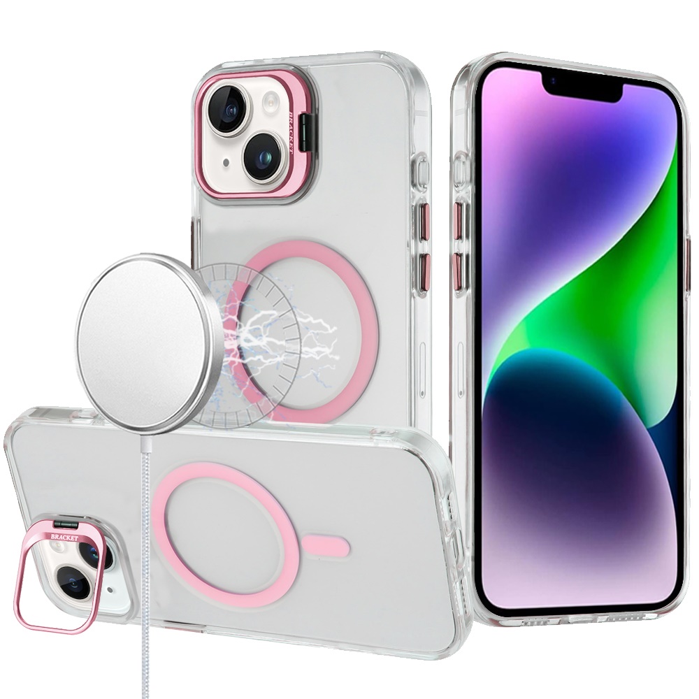 For iPhone 13/14 Transparent HQ Hybrid with Metallic Camera Stand Magnetic