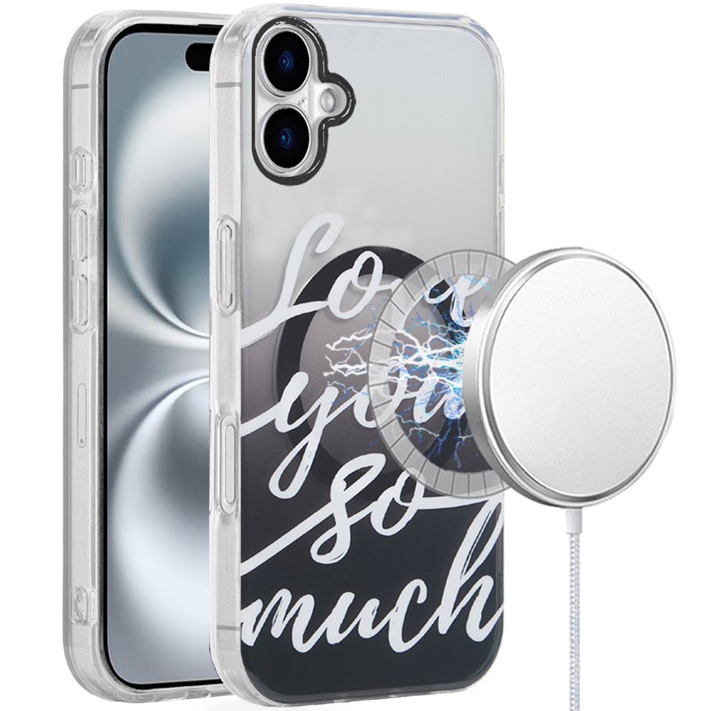 For iPhone 16 6.1 inch [Magnetic Circle] Double Layer Design IMD TPU Case - Love You So Much
