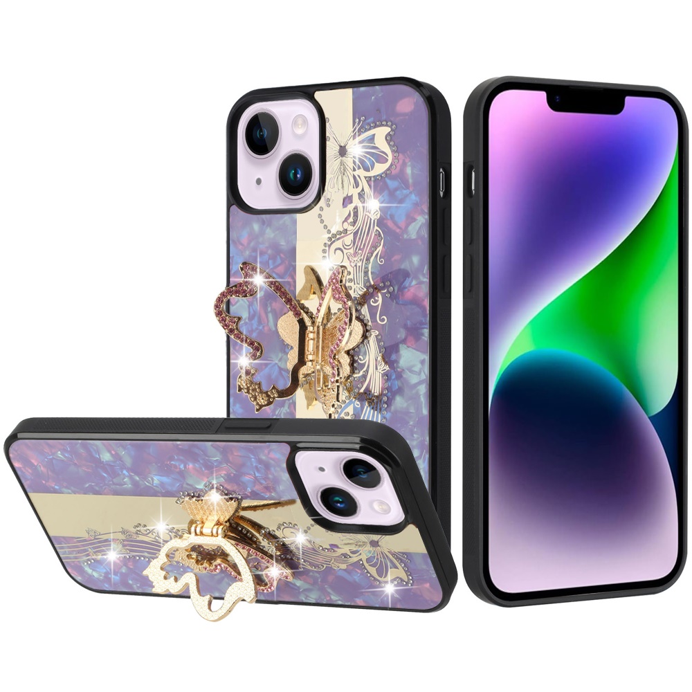 For iPhone 14/iPhone 13 SPLENDID Diamond Glitter Ornaments Engraving Case Cover - Enchanted Butterfly Purple