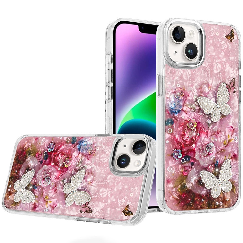 For iPhone 13/14 Epoxy Glitter Butterfly Ornaments Design HQ Metal Buttons Hybrid - 2