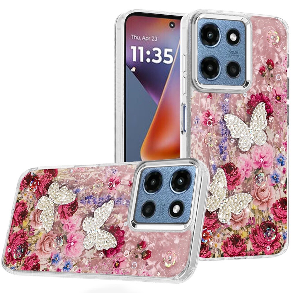 For Moto G 5G 2025/2026 - G Play 2026 - Epoxy Glitter Butterfly Ornaments Design HQ Metal Buttons Hybrid - 7