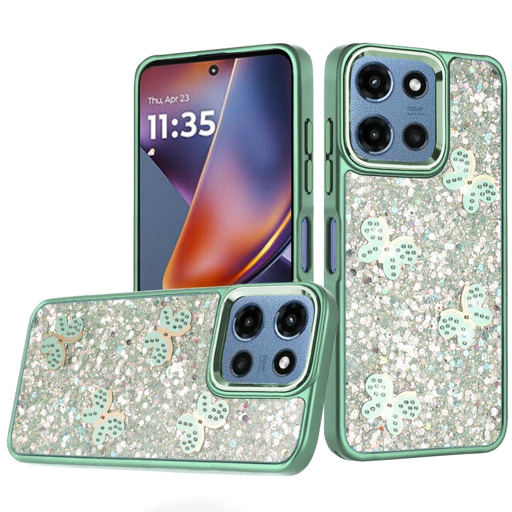 For Moto G 5G 2025/2026 - G Play 2026 - Cute Butterfly Ornaments Diamonds Shimmer Matching Metallic HQ Hybrid - Teal