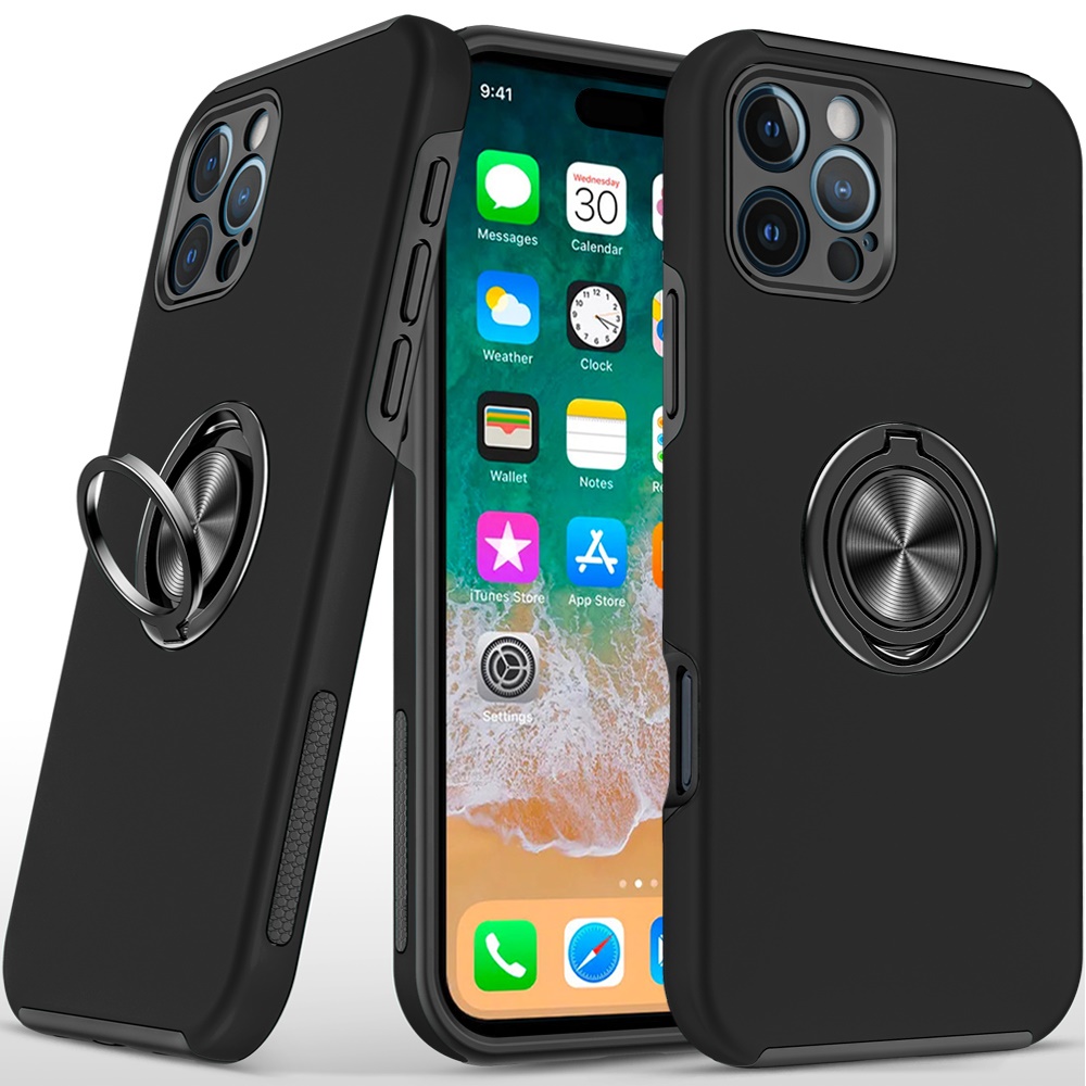 For iPhone 16 Pro Max 6.9 inch CHIEF Oil Painted Magnetic Ring Stand Hybrid Case Cover - Black