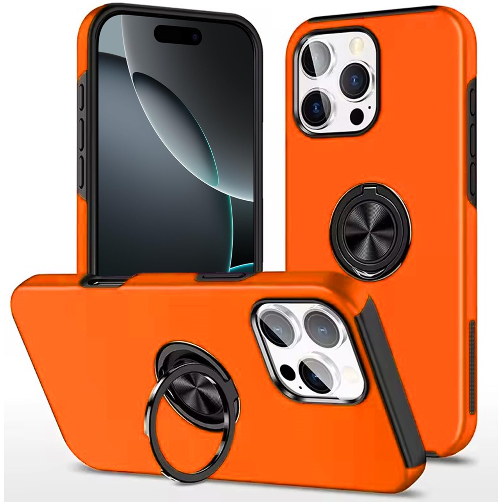 For iPhone 16 Pro Max 6.9 inch CHIEF Oil Painted Magnetic Ring Stand Hybrid Case Cover - Cosmic Orange