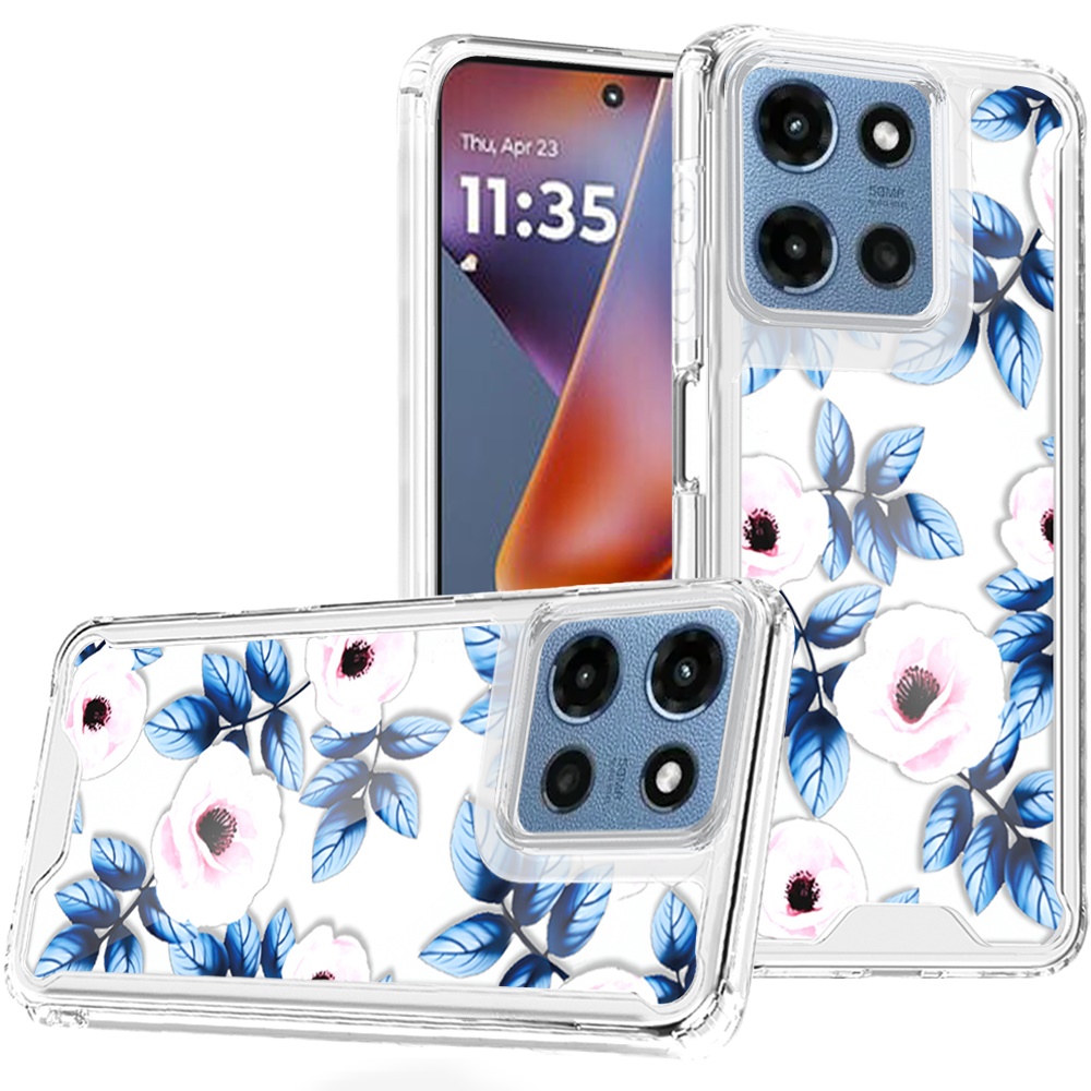 For Moto G 5G 2025/2026 - G Play 2026 - Beautiful TPU Designs Case Case - Blue Leaves and Pink Florals