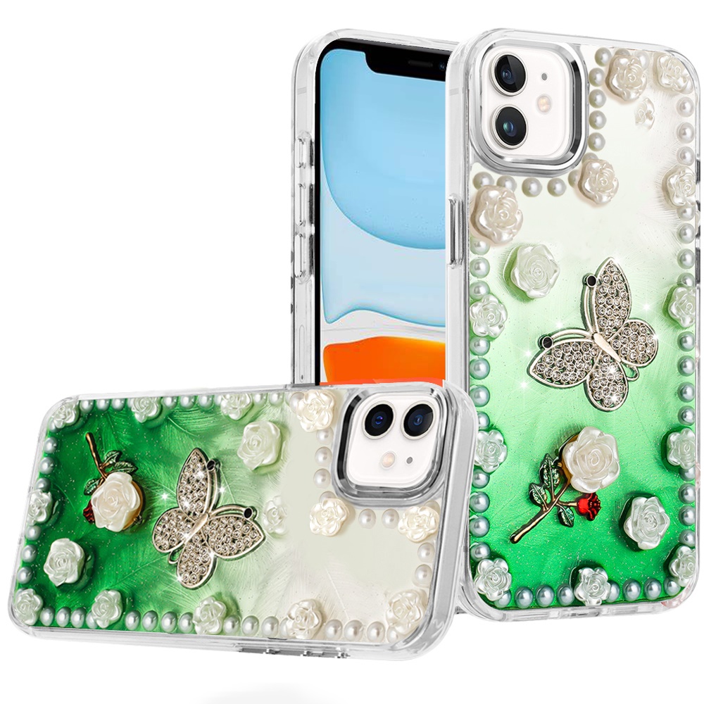 For iPhone 11 (XI6.1) Pearls Epoxy Glitter Ornaments Design Chrome Edged Case - 6