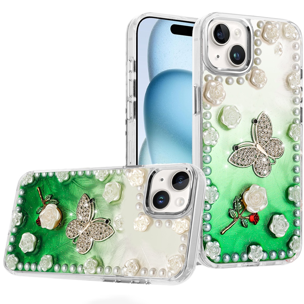 For iPhone 15 Pearls Epoxy Glitter Ornaments Design Chrome Edged Case - 6