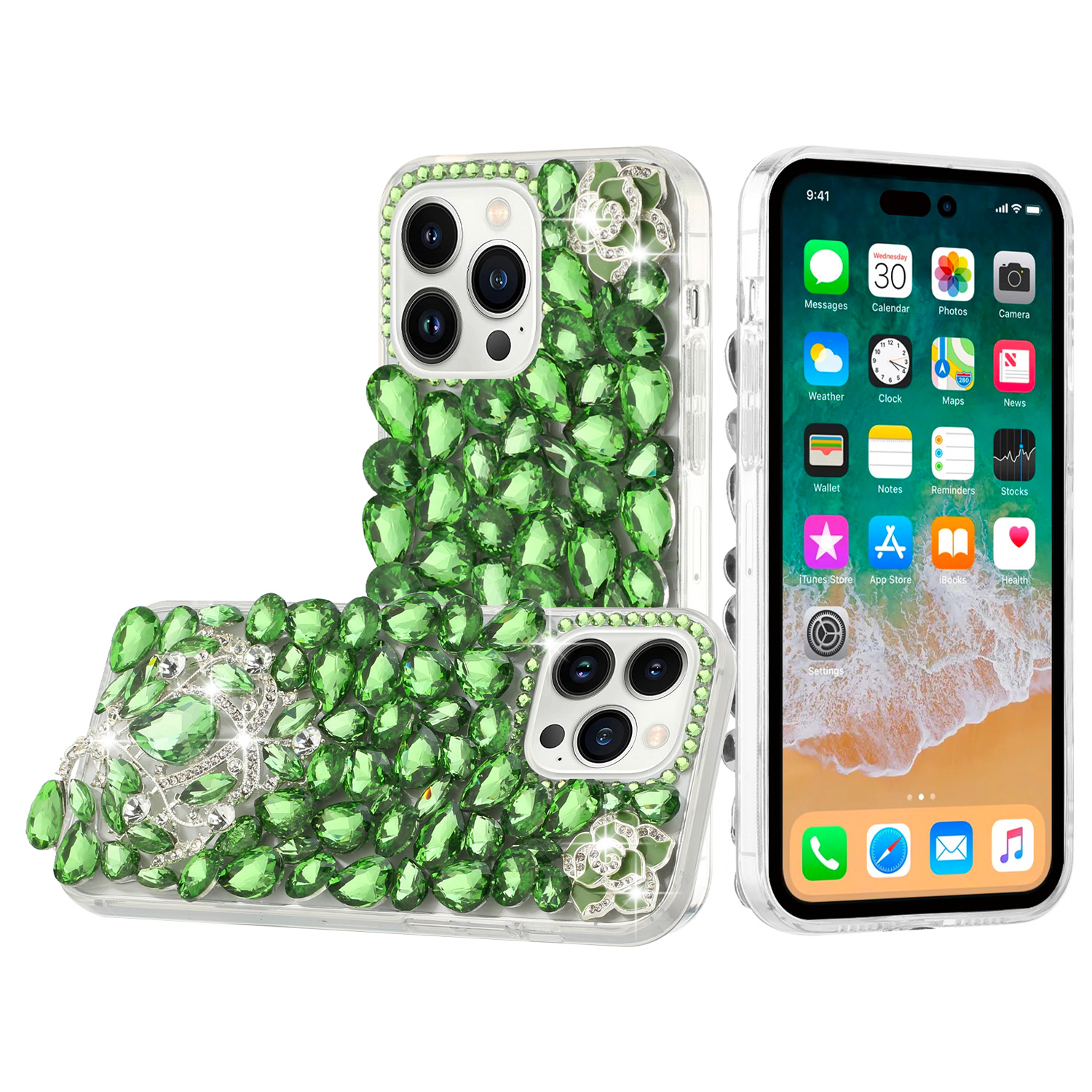 For iPhone 15 Jewel Full Diamond Bling Case Cover - Green