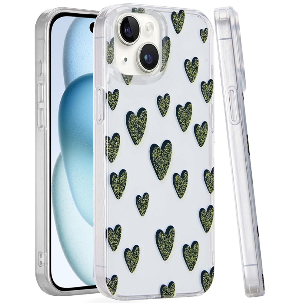 For iPhone 15 Double Layer Design IMD TPU Case - Black Hearts