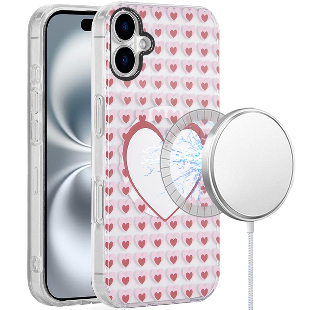 For iPhone 16 Plus 6.7 inch [Magnetic Circle] Double Layer Design IMD TPU Case - Mirror With Hearts