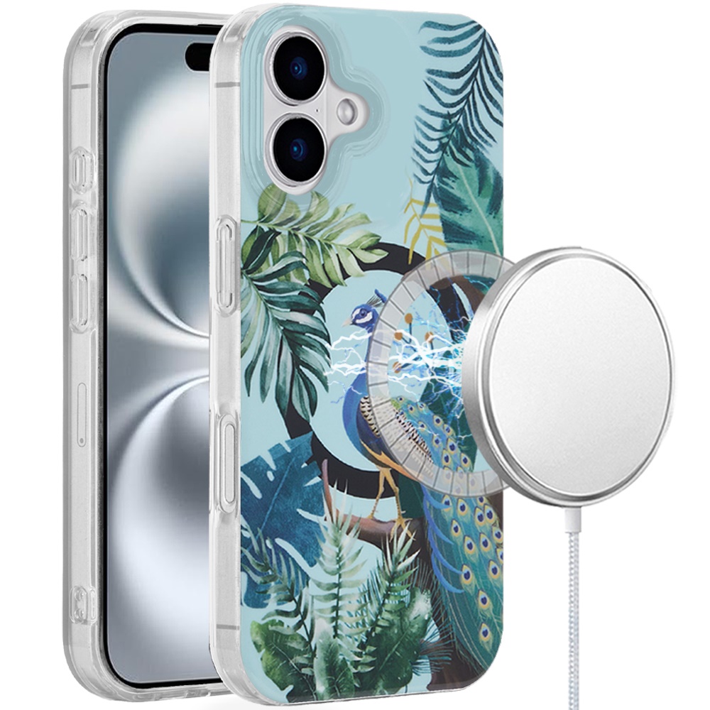 For iPhone 16 Plus 6.7 inch [Magnetic Circle] Double Layer Design IMD TPU Case - Peacock