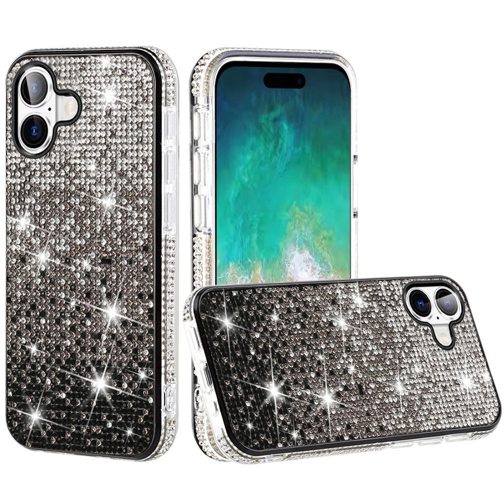 For iPhone 16 Plus 6.7 inch Party Diamond Bumper Bling Hybrid Case Cover - Black
