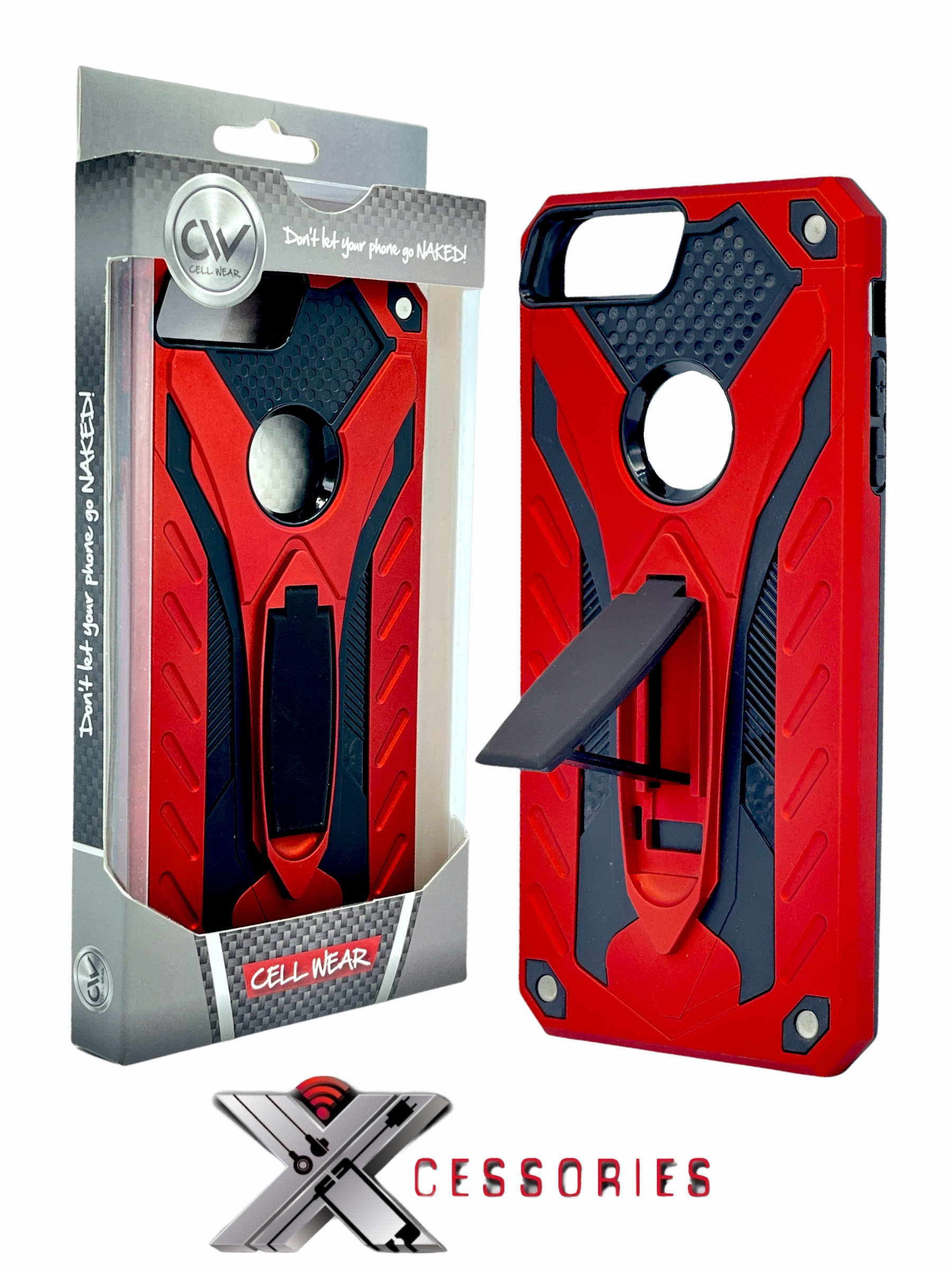 Shockproof Kickstand Case for IPhone 6+/7+/8+ - Red/Black