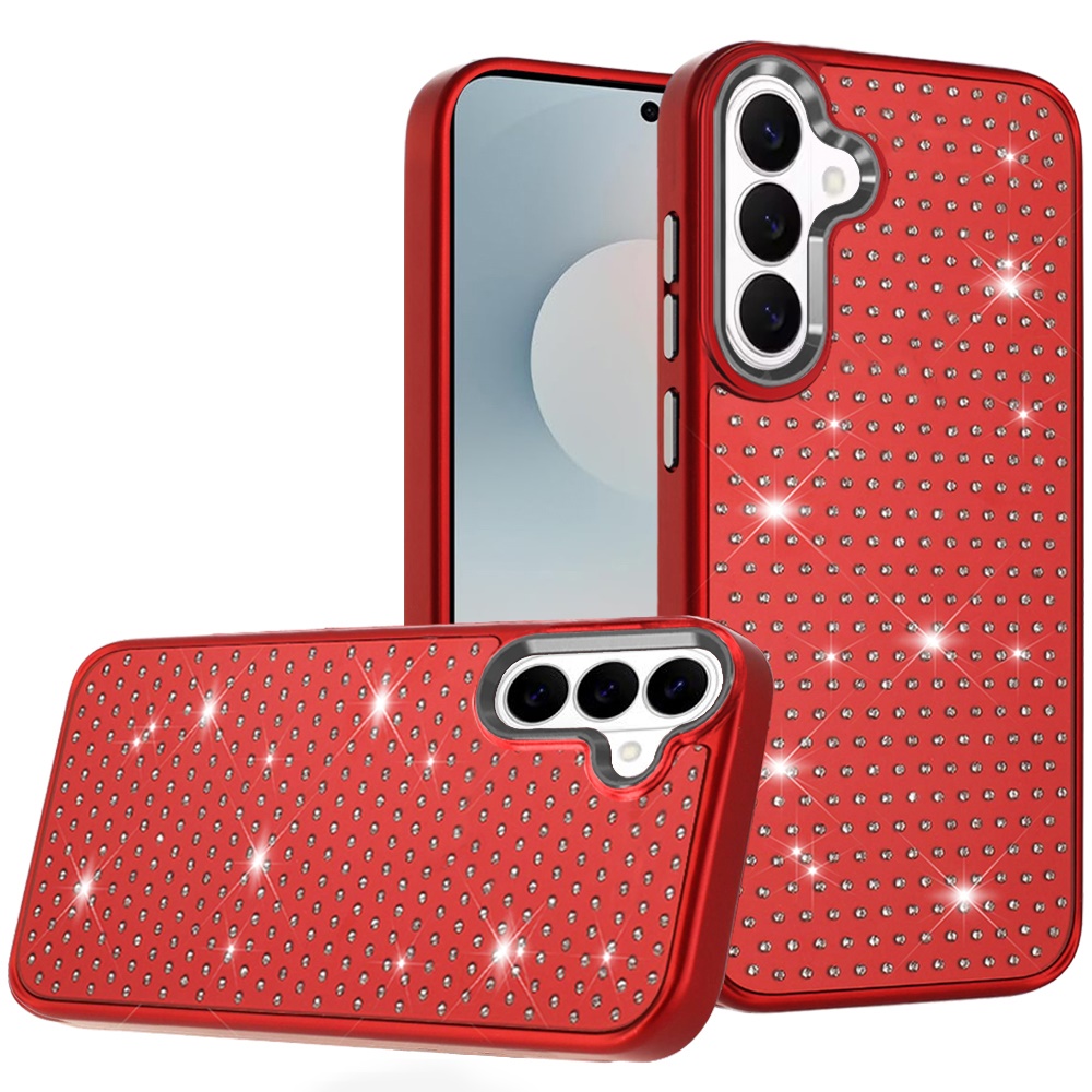 For Samsung s26 Plus Beautiful Diamond Metallic Design Metal Chrome Plusd Hybrid - Red