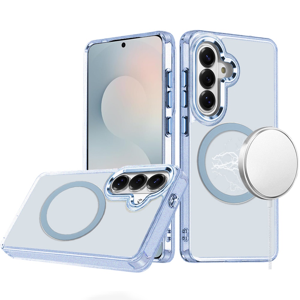 For Samsung s25 FE Magnetic Circle Ring Transparent Premium Acrylic with Metal Buttons & Camera Raised Lip - Light Blue