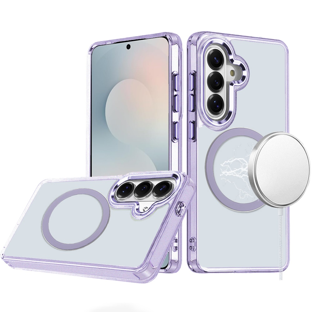 For Samsung s25 FE Magnetic Circle Ring Transparent Premium Acrylic with Metal Buttons & Camera Raised Lip - Light Purple