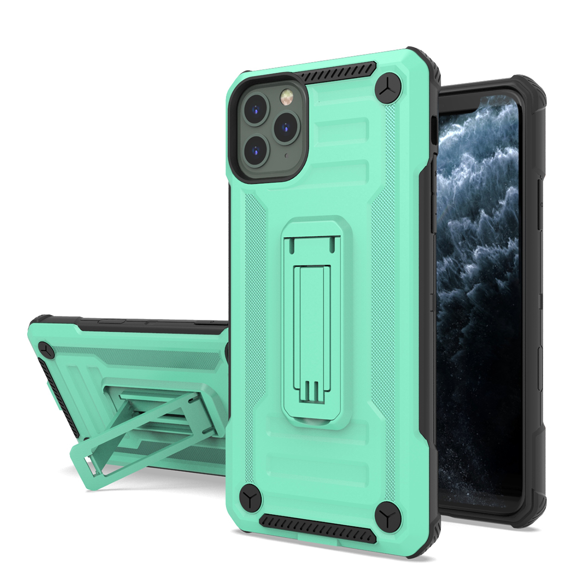 Shockproof Kickstand Case for IPhone 11 Pro - Teal/Black