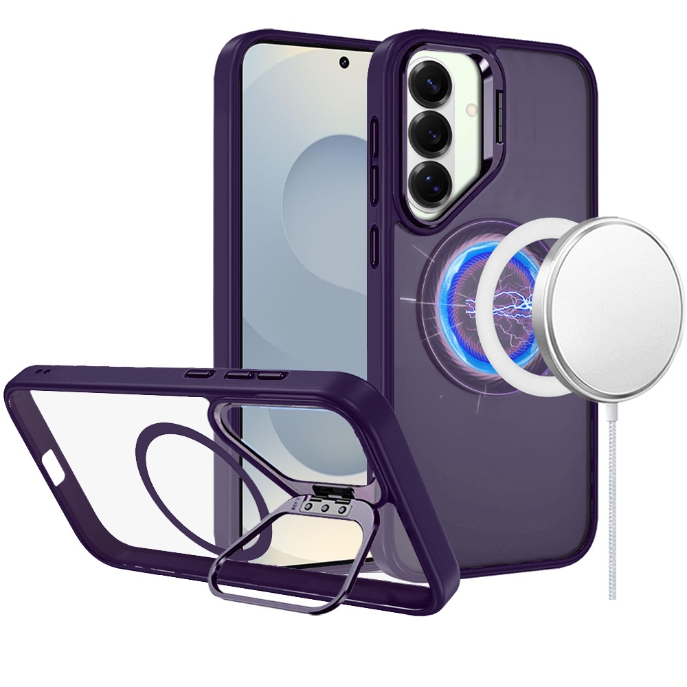 For Samsung s26 Plus Fearless Tough HQ Metallic Hybrid with Camera Ring Stand [Magnetic Circle] Case - Dark Purple
