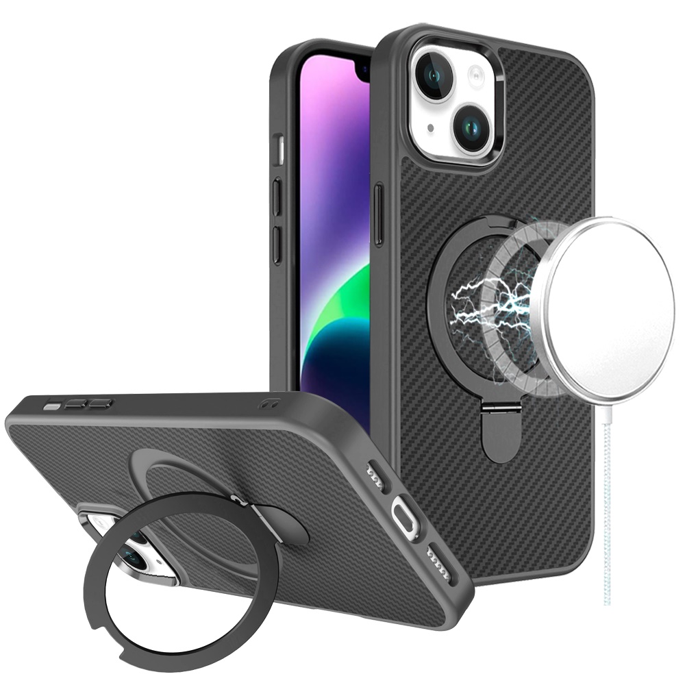 For iPhone 13/14 Carbon Design [Magnetic Circle] with Ring Stand Hybrid Cas
