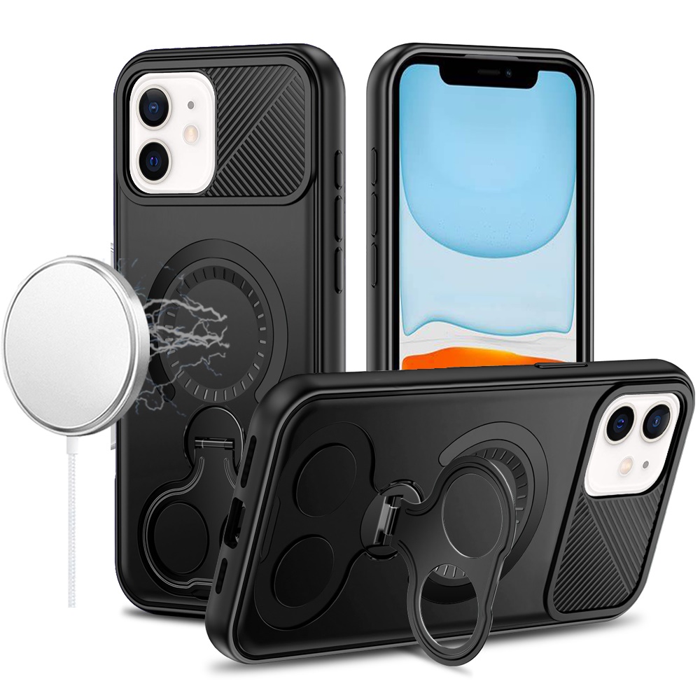 For iPhone 11 (XI6.1) Car Mount with 2-Ring Stand Hybrid Case - Black