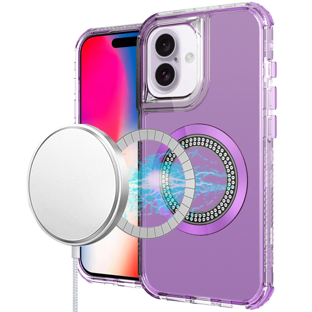 For iPhone 16 6.1 inch Magnetic Ring Circle Bling Chrome 3in1 Hybrid Case - Purple