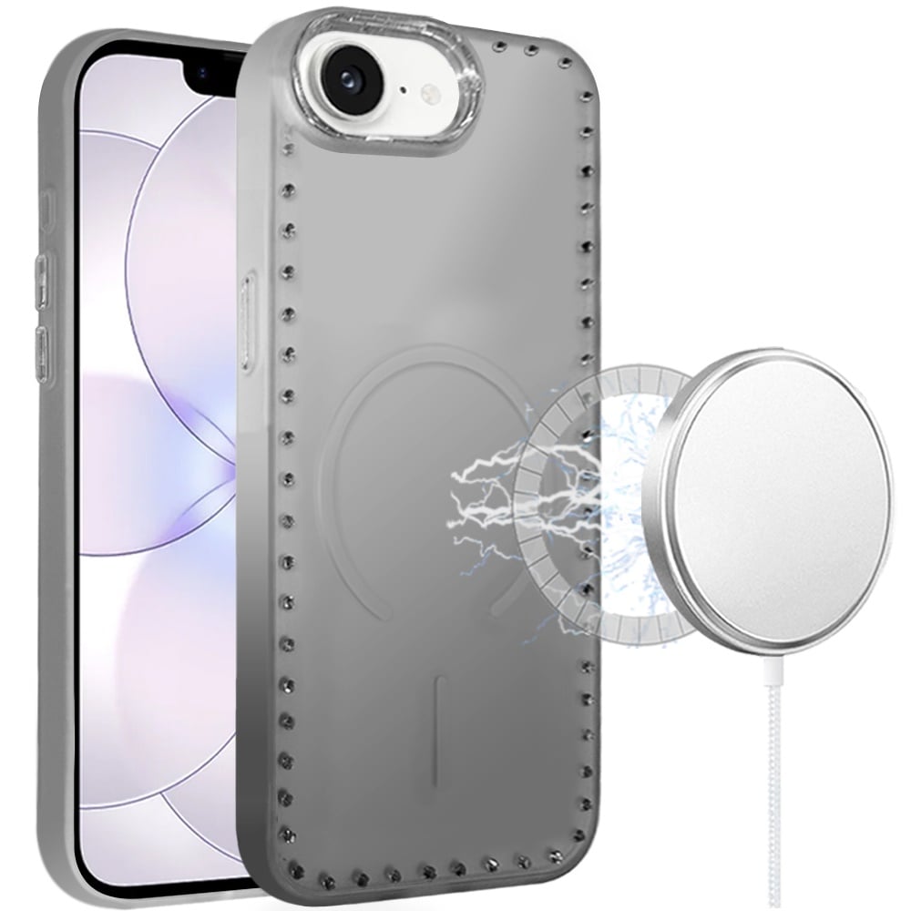 For iPhone 16E (E edition) / SE4 (2025) Premium Frosted Diamond Edge Magnetic Hybrid Case - Smoke