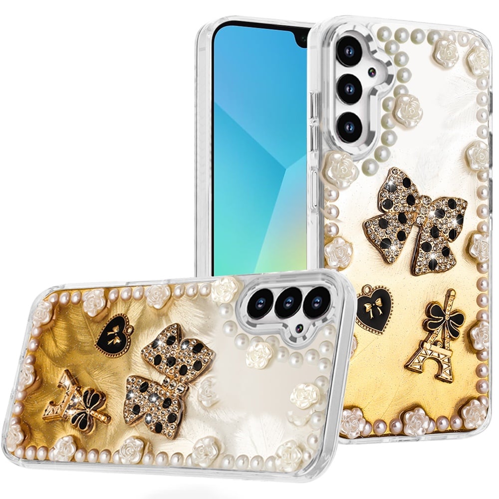 For Samsung A16 5G Pearls Epoxy Glitter Ornaments Design Chrome Edged Case