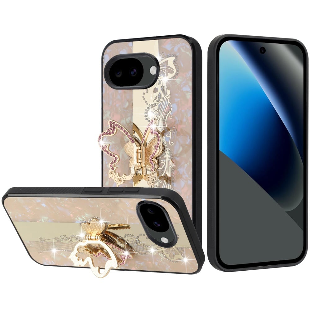 For Google Pixel 10a SPLENDID Diamond Glitter Ornaments Engraving Case Cover - Enchanted Butterfly Gold