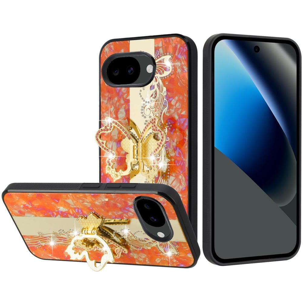 For Google Pixel 10a SPLENDID Diamond Glitter Ornaments Engraving Case Cover - Enchanted Butterfly Cosmic Orange