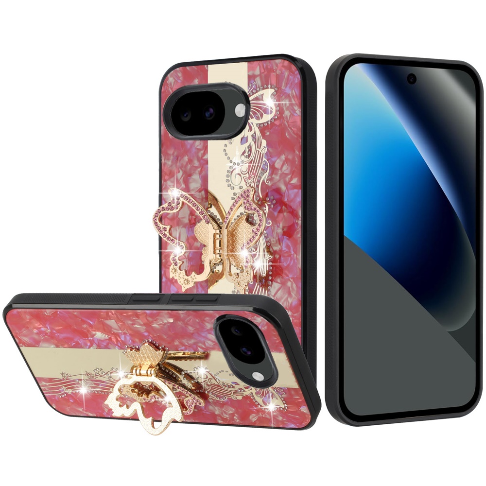 For Google Pixel 10a SPLENDID Diamond Glitter Ornaments Engraving Case Cover - Enchanted Butterfly Red