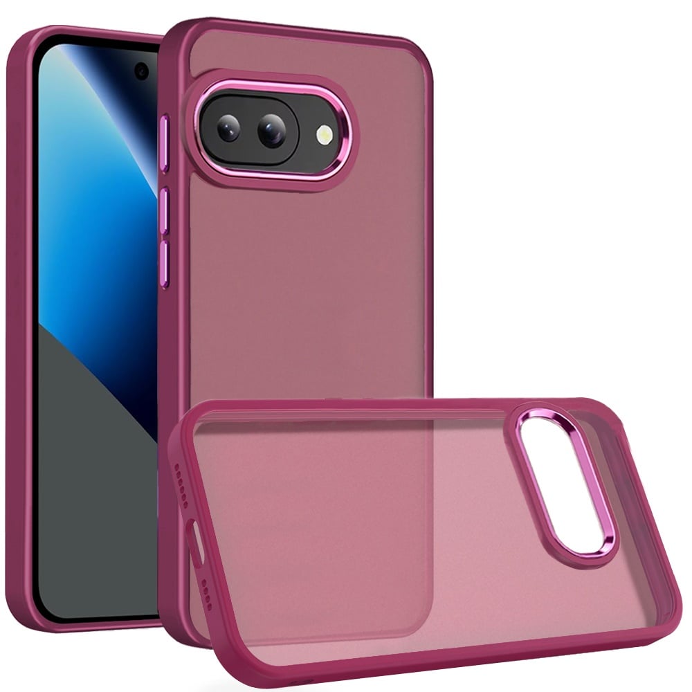 For Google Pixel 10a Finest Transparent Thick Acrylic Hybrid Metal Buttons Cover Case - Burgundy