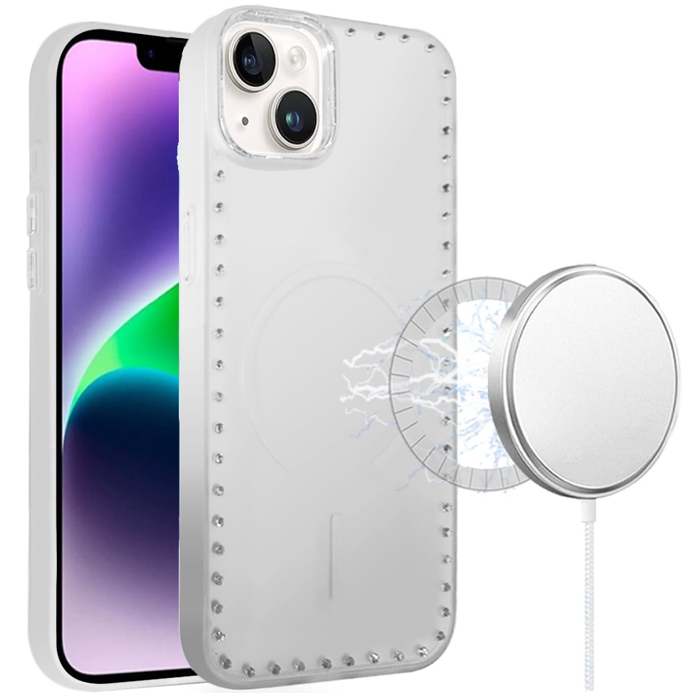 For iPhone 13/14 Premium Frosted Diamond Edge Magnetic Hybrid Case - Clear