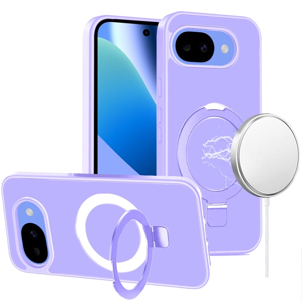 For Google Pixel 10a Magnetic Matching Ring Stand Full Rotation Matte Hybrid - Light Purple
