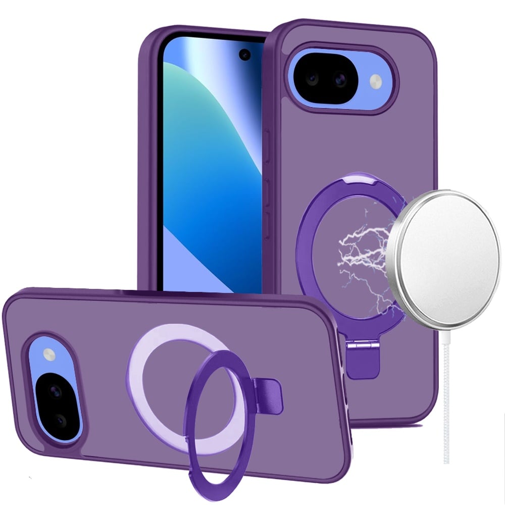 For Google Pixel 10a Magnetic Matching Ring Stand Full Rotation Matte Hybrid - Dark Purple