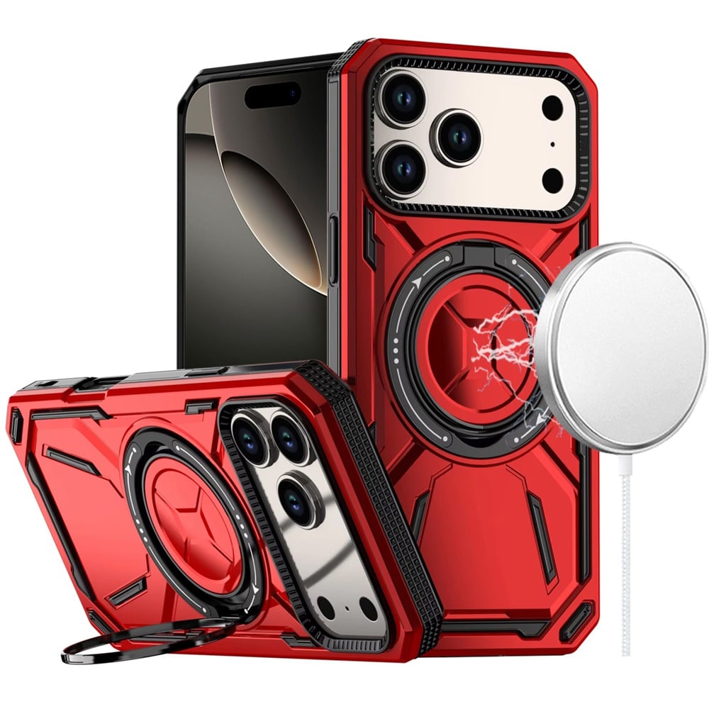 For iPhone 17 Pro Max Loop Hybrid with [Magnetic Ring Circle] 360 degrees Rotational Kickstand Case Cover - Red