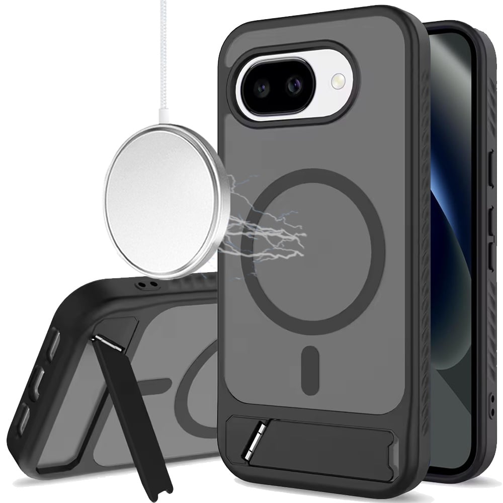 For Google Pixel 10a Matte Magnetic Hybrid with Metal Kickstand Case - Black