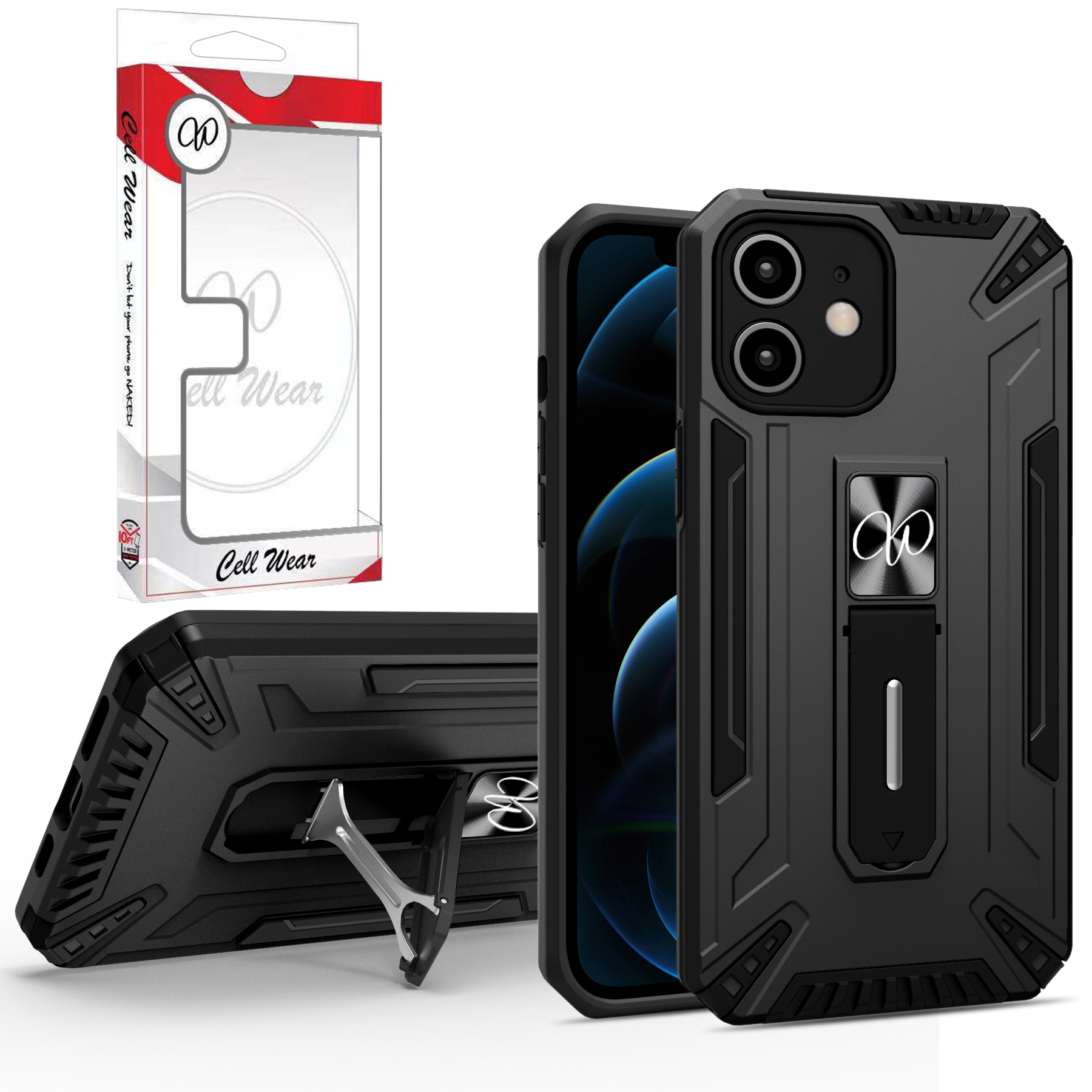 Built-In Kickstand Magnetic Mount Capability Heavy-Duty Mobile Phone Case For iPhone 12 - Black