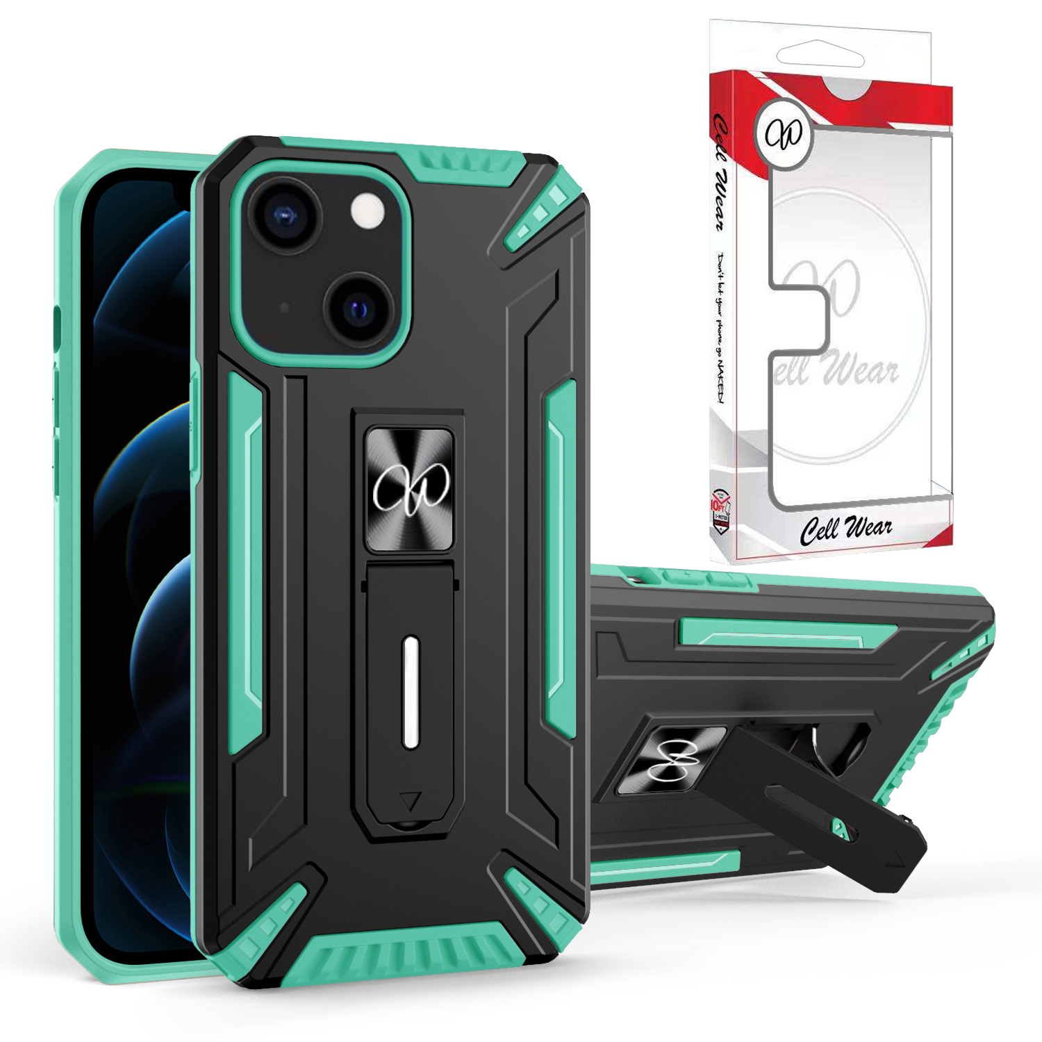Kickstand Magnetic Mount Heavy-Duty Case For iPhone 13/14 - Green/Black