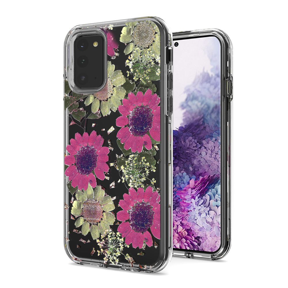 Creative Printing Design Glitter Hybrid Case For Samsung Galaxy S20 Plus - Daisy Pink
