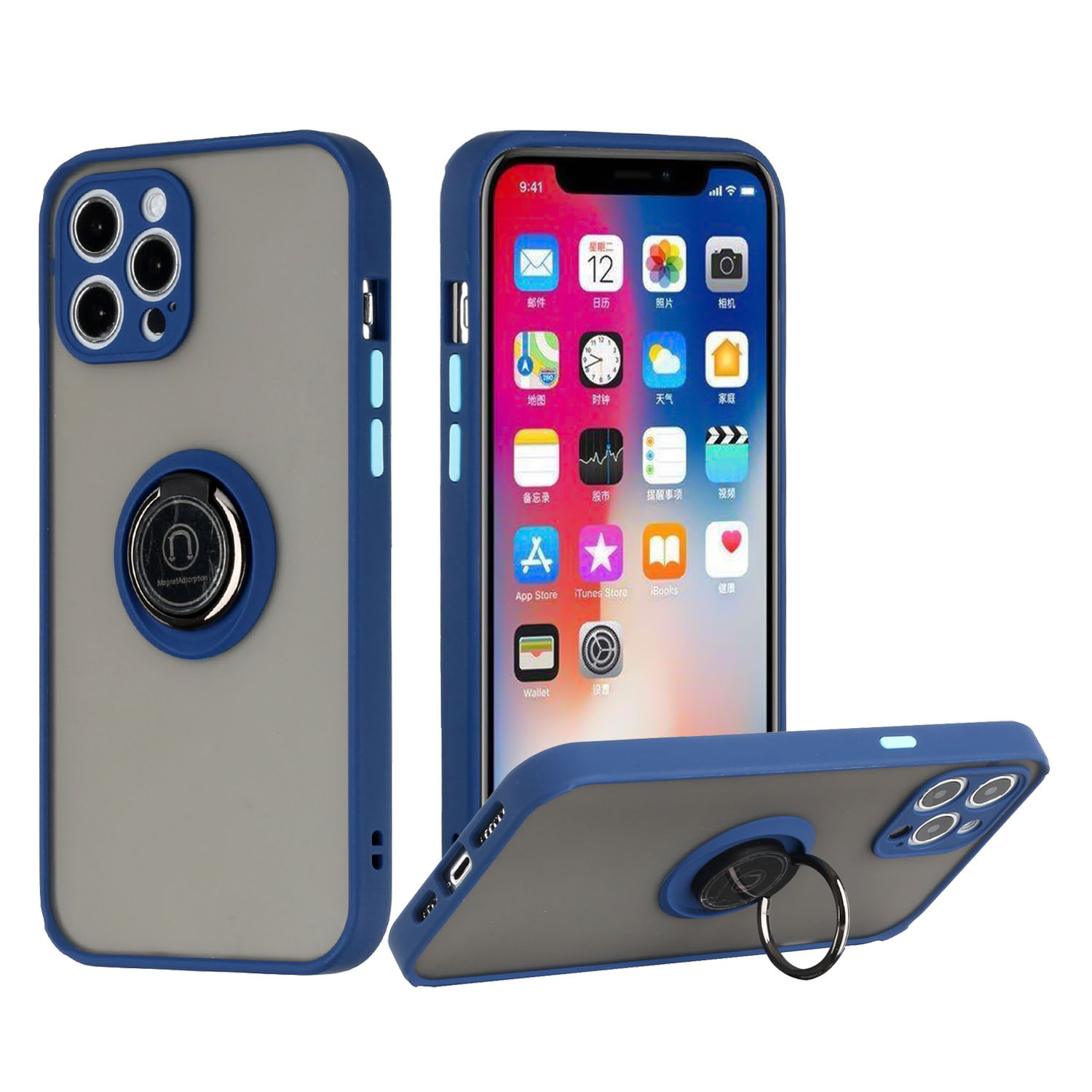 For iPhone 13 Pro Magnetic RingStand Case Cover - Dark Blue